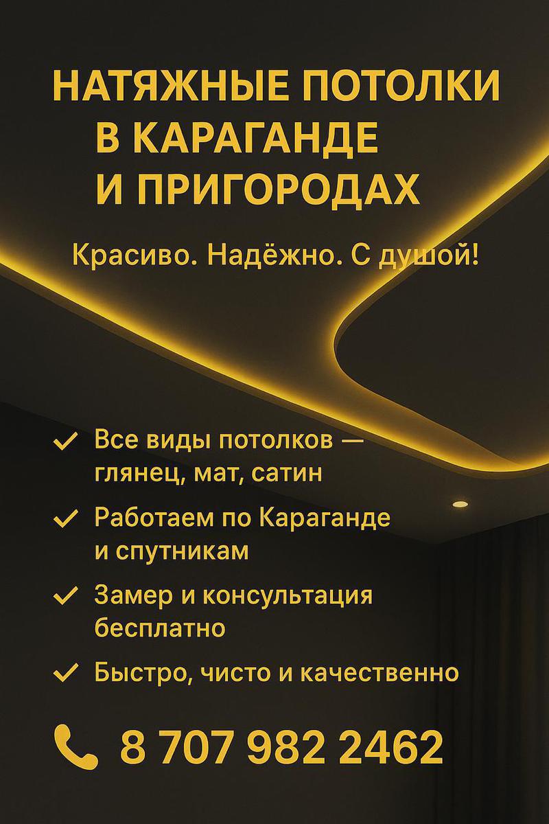 Натяжные потолки в Караганде и пригороде. - Ремонт и строительствоКод: 3215219 Создано: 22-01-2026 20:17